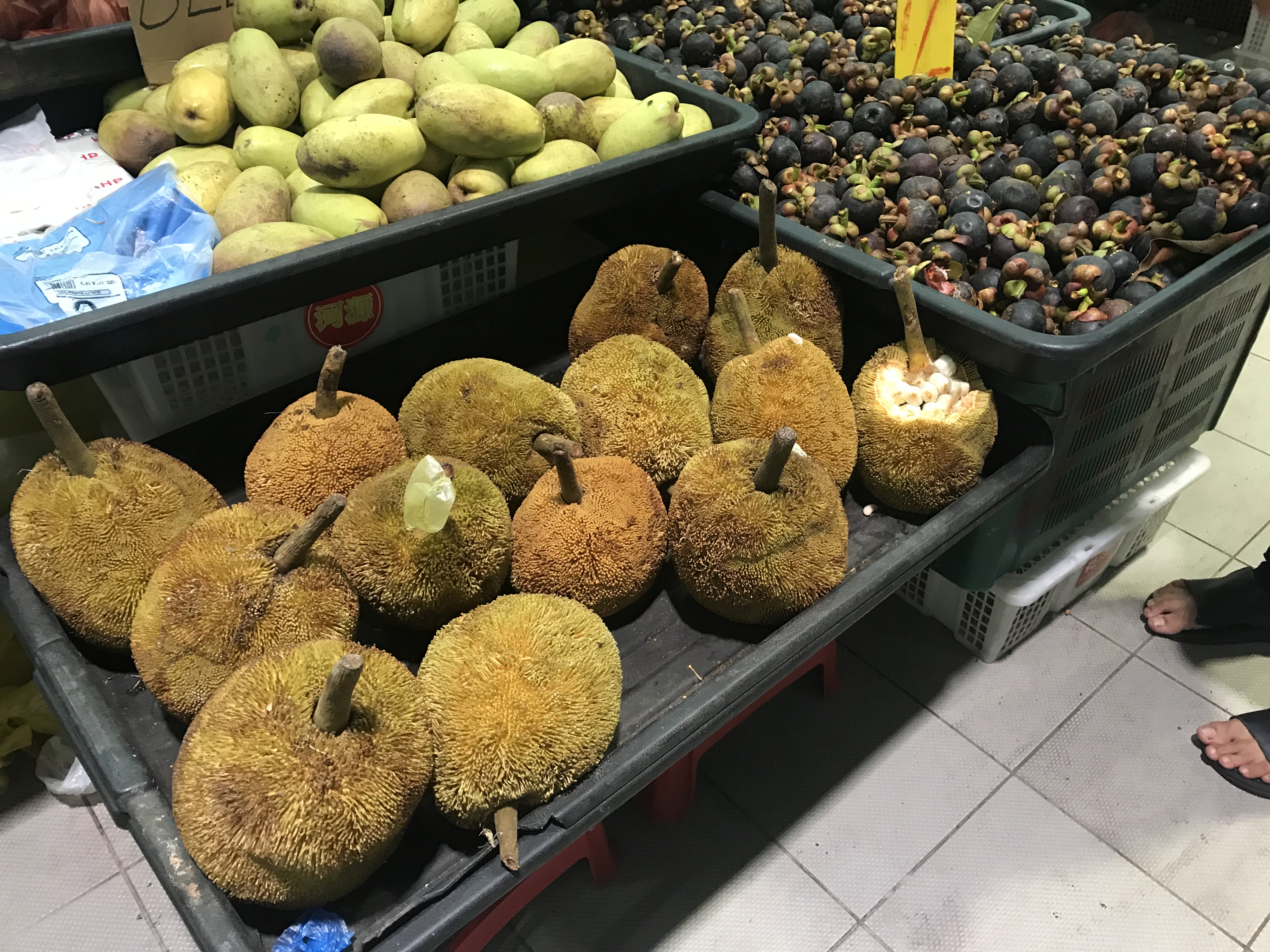 名物のドリアンは三色もあるとのこと、いろんな形やいろんな色のものがあり、試したいのは山々でしたが、ドリアン臭の汗が出たら周りにご迷惑かなと思い(笑)断念しました。