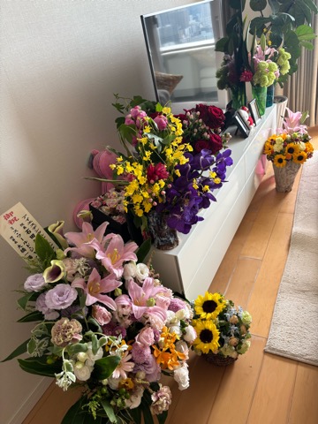 昨日もお花をアップいたしましたが、自宅にもたくさんのお花を飾らせていただいております。たくさんの方々にたくさんのお心遣いを賜り、本当に感激でございます。