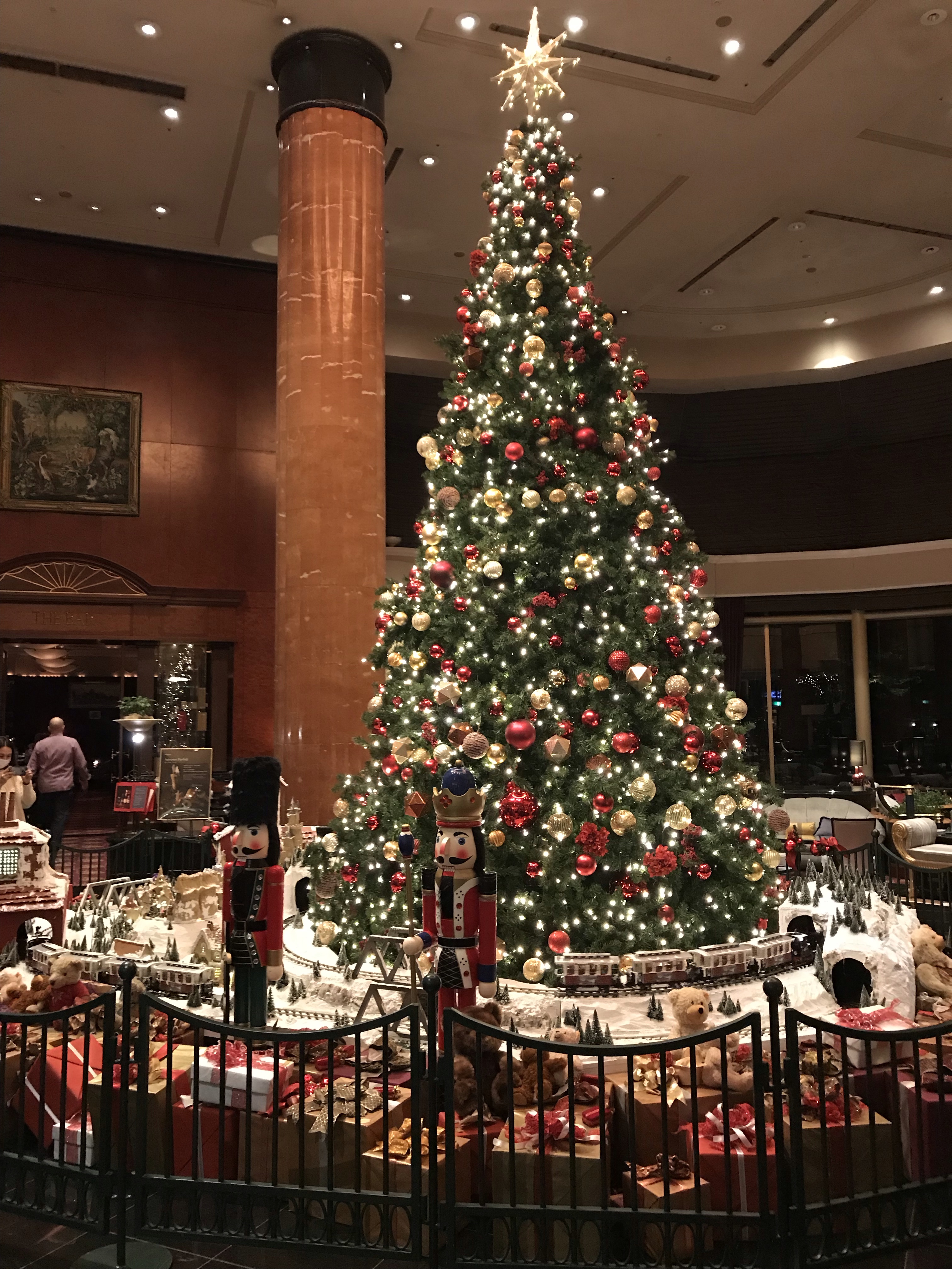 こちらのクリスマスツリーの足元には列車が走っていて、綺麗な列車を含めて眺めていると、全然飽きないのです。