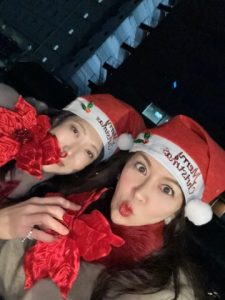 お隣は仲良しの女性社長のヒロさんです。彼女はお子様がお二人いてとても忙しいのに、会社の経営もしっかり行っている素晴らしい方です。この日はお揃いのサンタ帽を被り、弾けました!