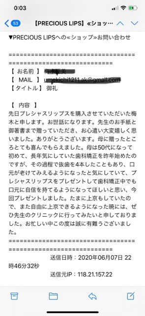 このような感謝のメールをいただけて、感激しております(涙)