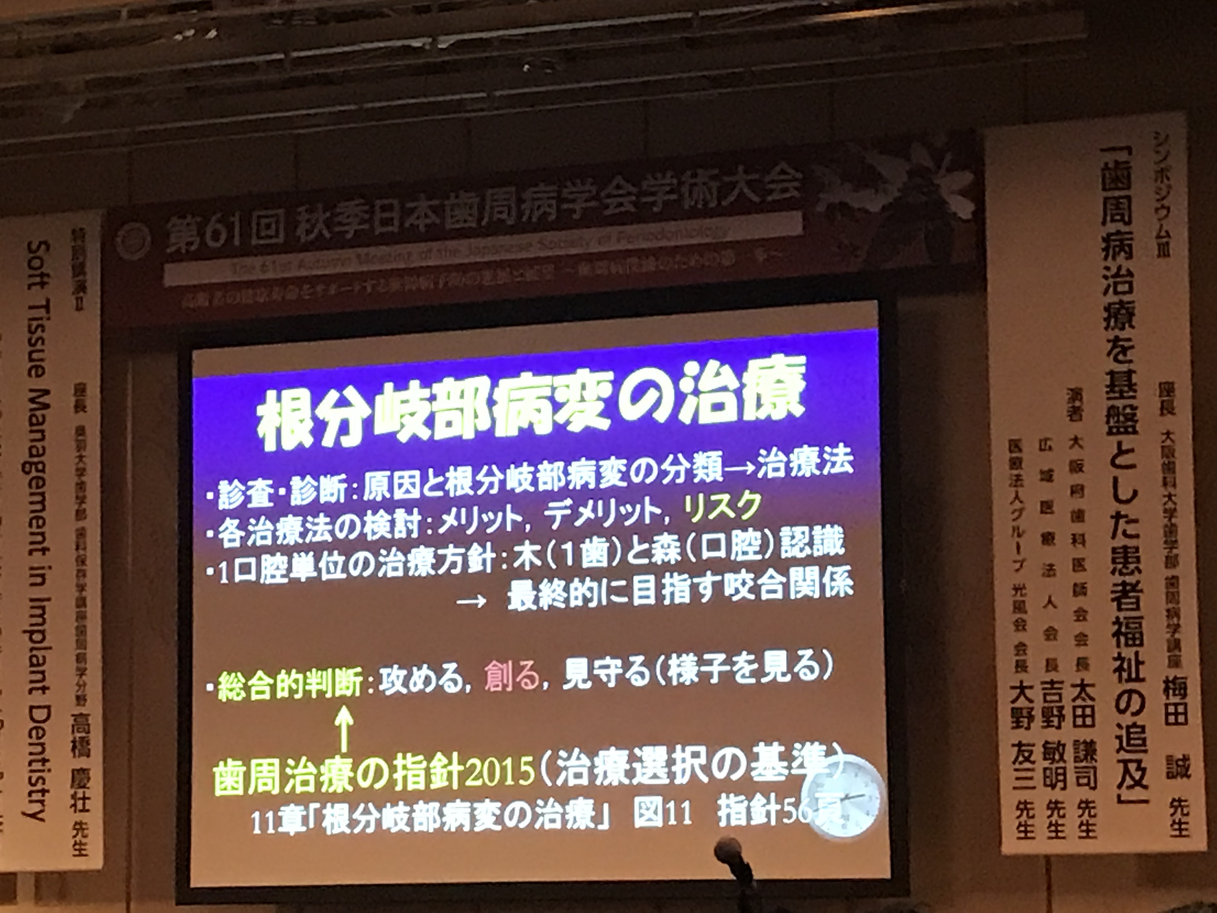 中でも、認定医基調講演では、奥歯の根の間に出来た病変の治療に関してのガイドラインが明らかになり、大変勉強になりました。