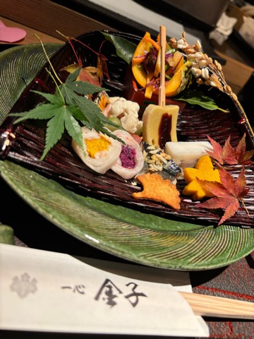 皆様こんにちは!今日はちょっと湿度が高くて、これから雨が降るかもしれませんね。写真は先日の会食でいただいた秋を表現する一皿ですが、10月半ばを過ぎても秋たけなわという訳にはいかない空模様ですね。