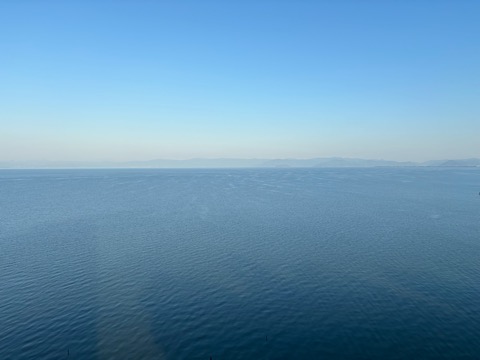 琵琶湖はご存じの通り日本で1番大きな湖ですから、対岸が全く見えず、凪の海のようです。この日も朝から素晴らしい天気で、少し高いところから見た湖はとても美しかったです。