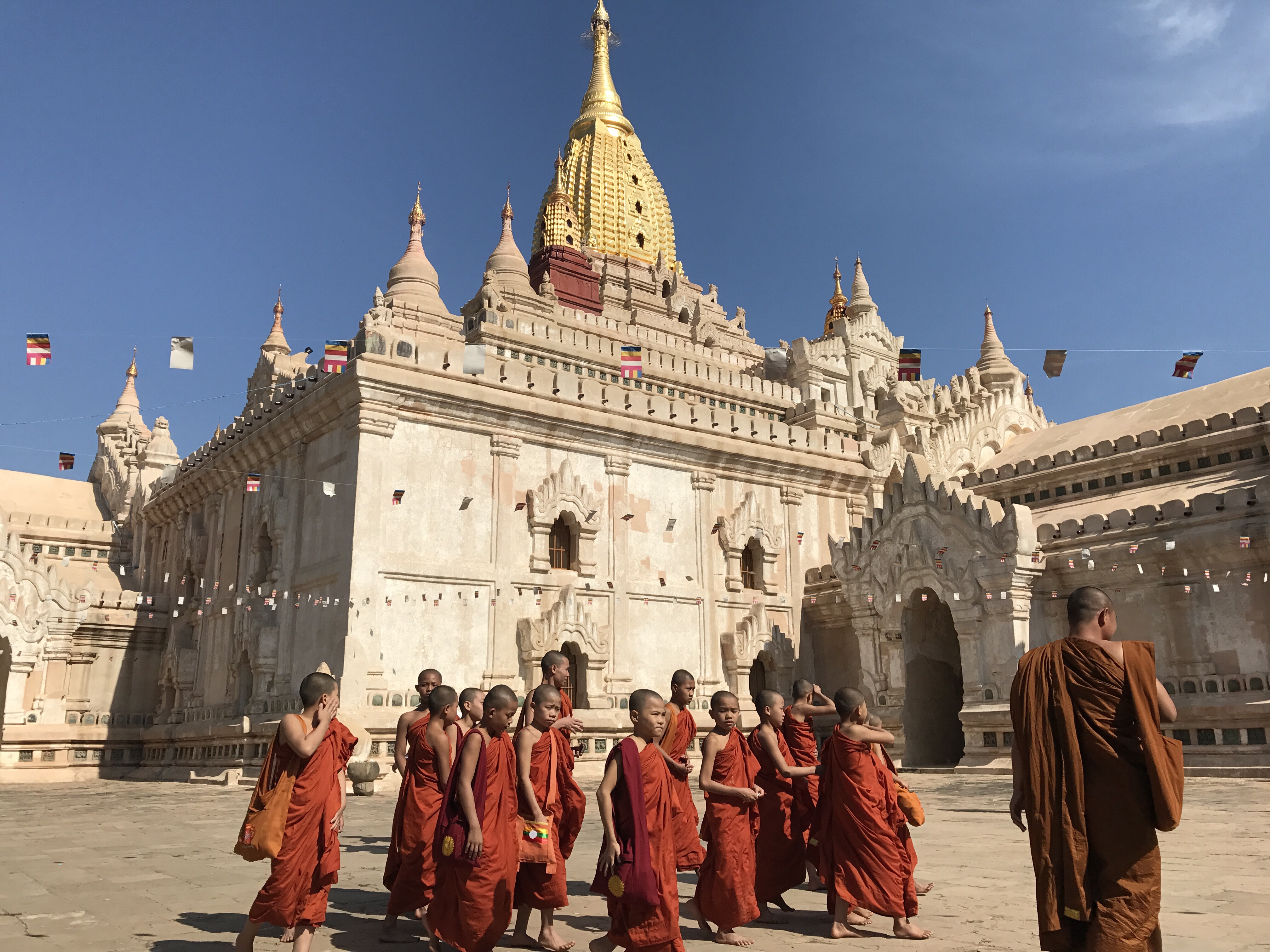 バガンでは、4つの大きな寺院に行きました。たくさんの寺院の中で、アーナンダー寺院は、バガンで最も美しいと言われているそうです。