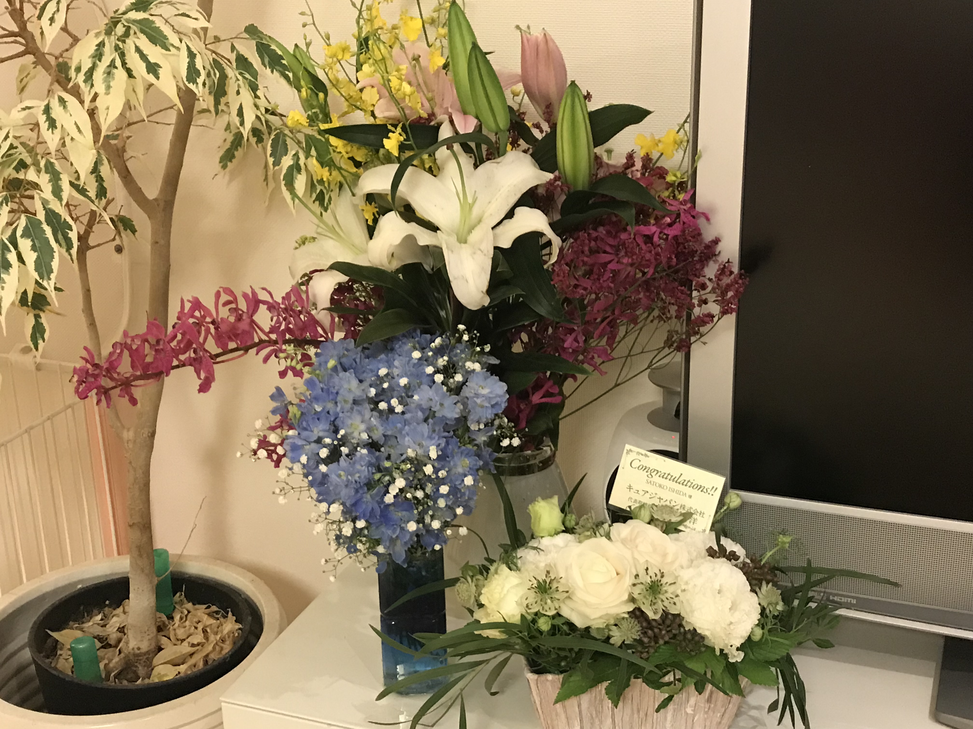 ライブでは皆様から沢山のお花を頂戴致しました!クリニックも自宅も、お花の良い香りに満たされていて、本当に幸せです。本当に、お心遣いをいただきありがとうございました!