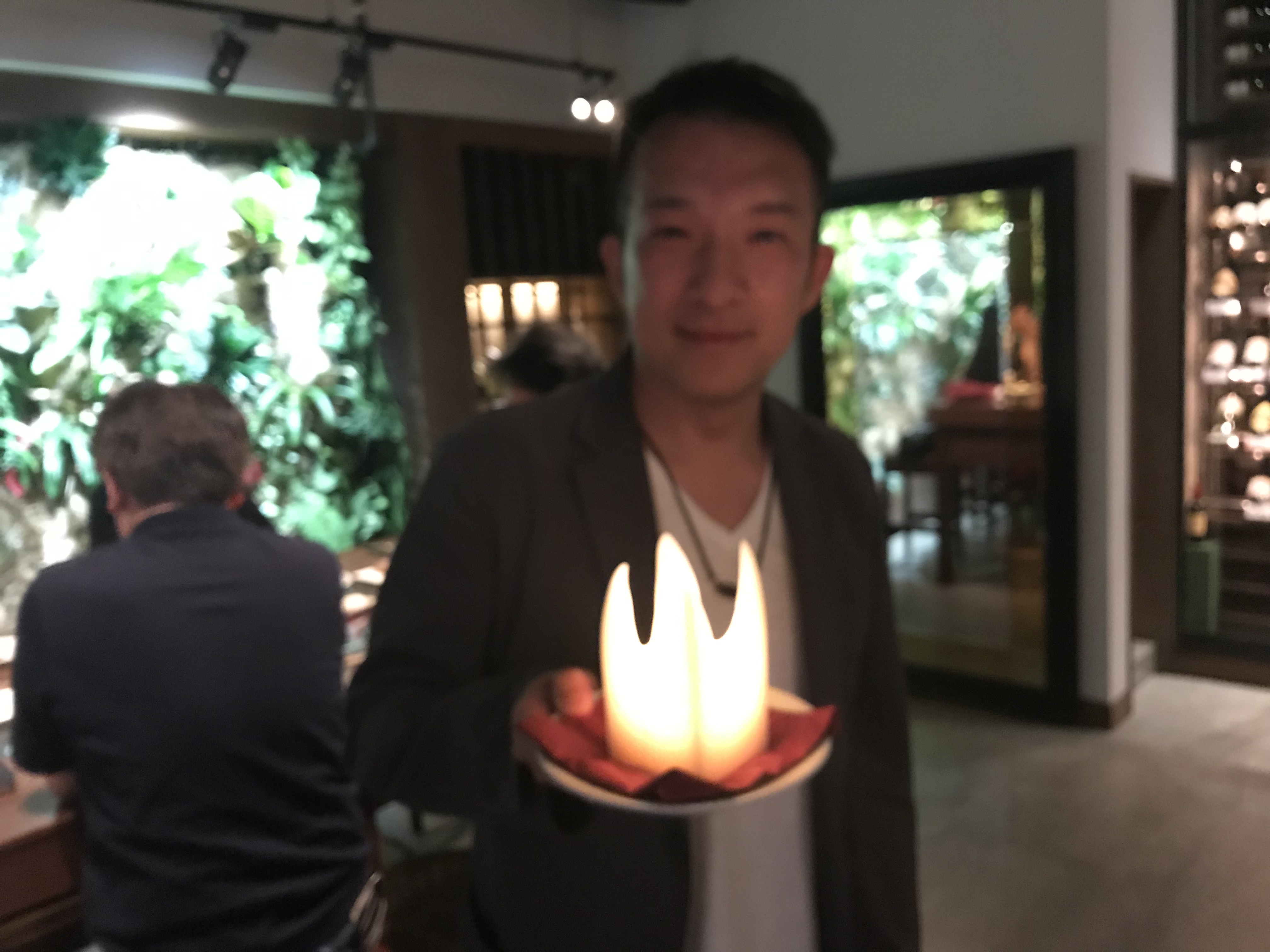 彼はキャンドルを持って得意げです(笑)