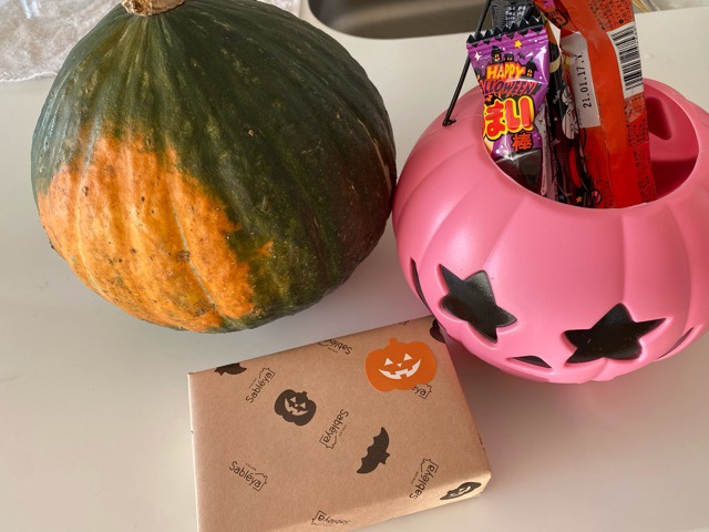 ピンクのカボチャは、先日参加したコンペでのニアピン賞の景品です!
